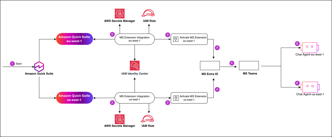 Favorite Organizations with users in multiple geographies face data residency requirements such as General Data Protection Regulation (GDPR) in Europe, country-specific data sovereignty laws, and internal compliance policies. Amazon Quick with Microsoft 365 extensions supports Regional routing to meet these requirements. Amazon Quick supports multi-Region deployments so you can route