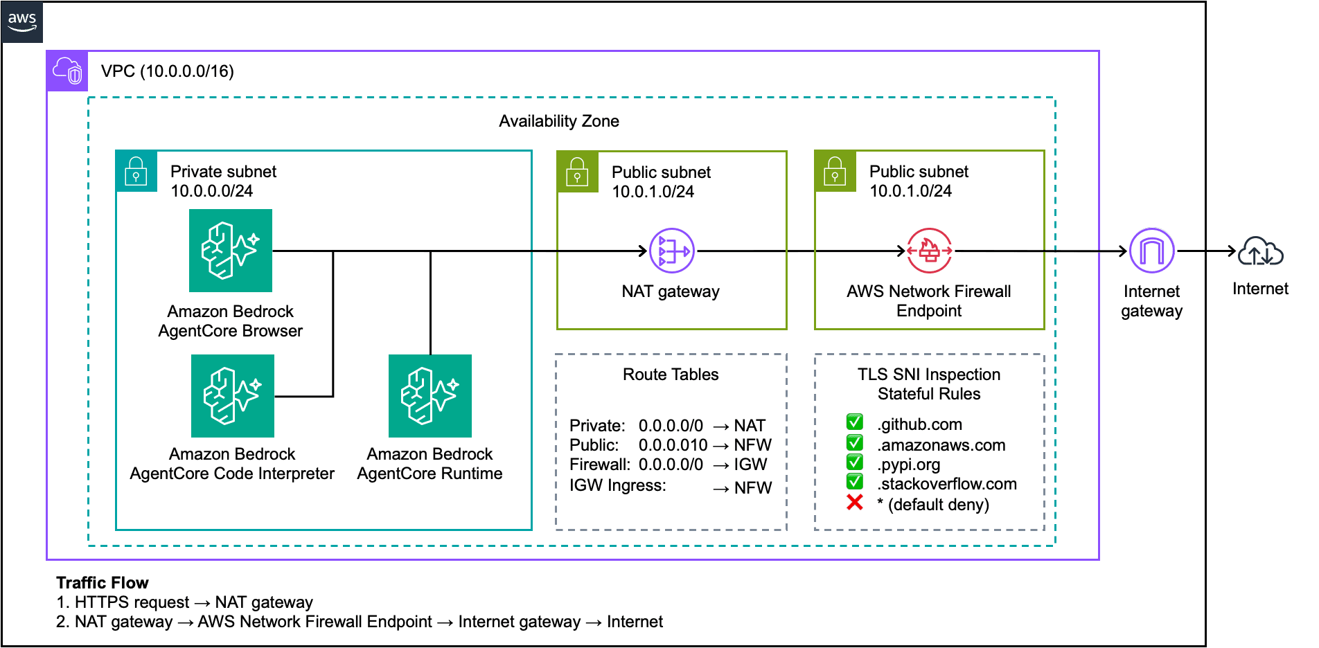 Favorite AI agents that can browse the web open powerful possibilities—from research automation to real-time data gathering. However, giving an AI agent unrestricted internet access raises security and compliance concerns. What if the agent accesses unauthorized websites? What if sensitive data is exfiltrated to external domains? Amazon Bedrock AgentCore provides