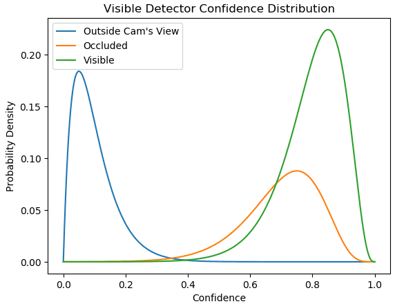 In the training stage, all the labeled points with locations, including visible points and occluded points, are used for training. Therefore, this model by default provides the location and confidence of the prediction. In the following figure, a large confidence threshold (main threshold) near 0.6 is capable of dividing the points that are visible or occluded versus outside of camera’s viewpoints. However, occluded points and visible points are not separated by the confidence, which means the predicted confidence is not useful for predicting the visibility.