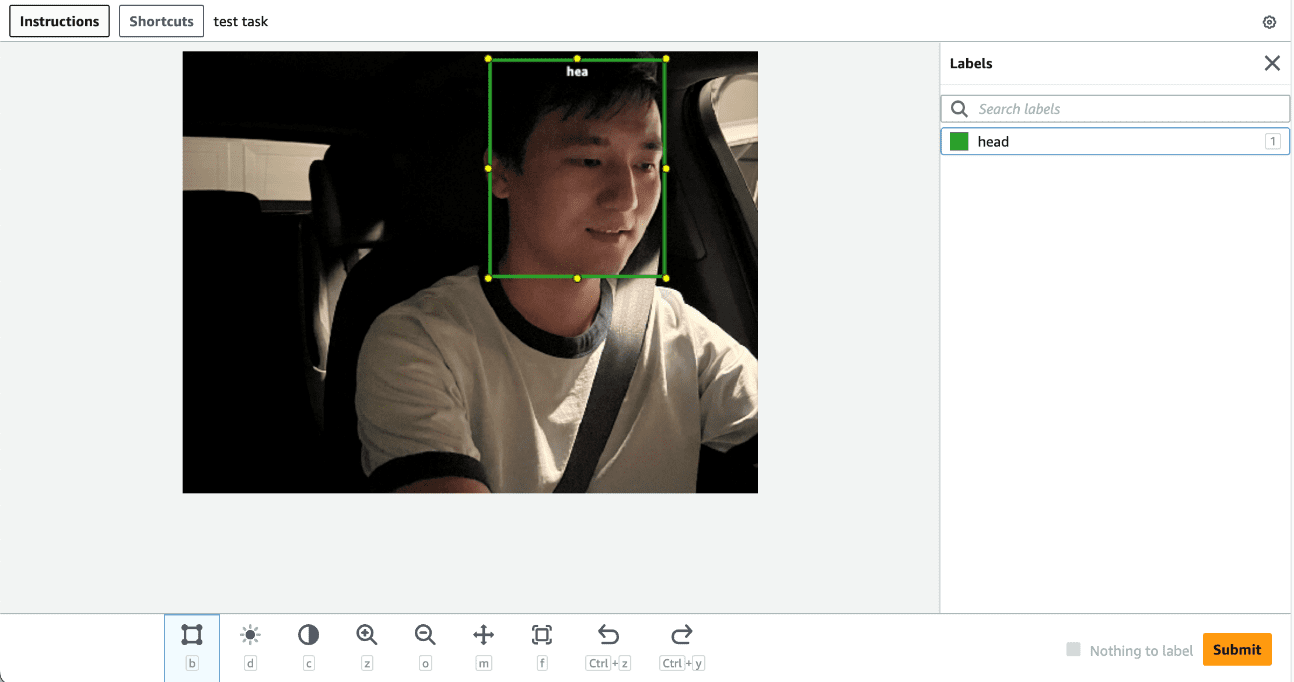 In the implementation, we use SageMaker Ground Truth for the human labeling process. SageMaker Ground Truth provides a user-friendly and intuitive UI for data labeling. The following screenshot demonstrates a SageMaker Ground Truth labeling job for head bounding box annotation.