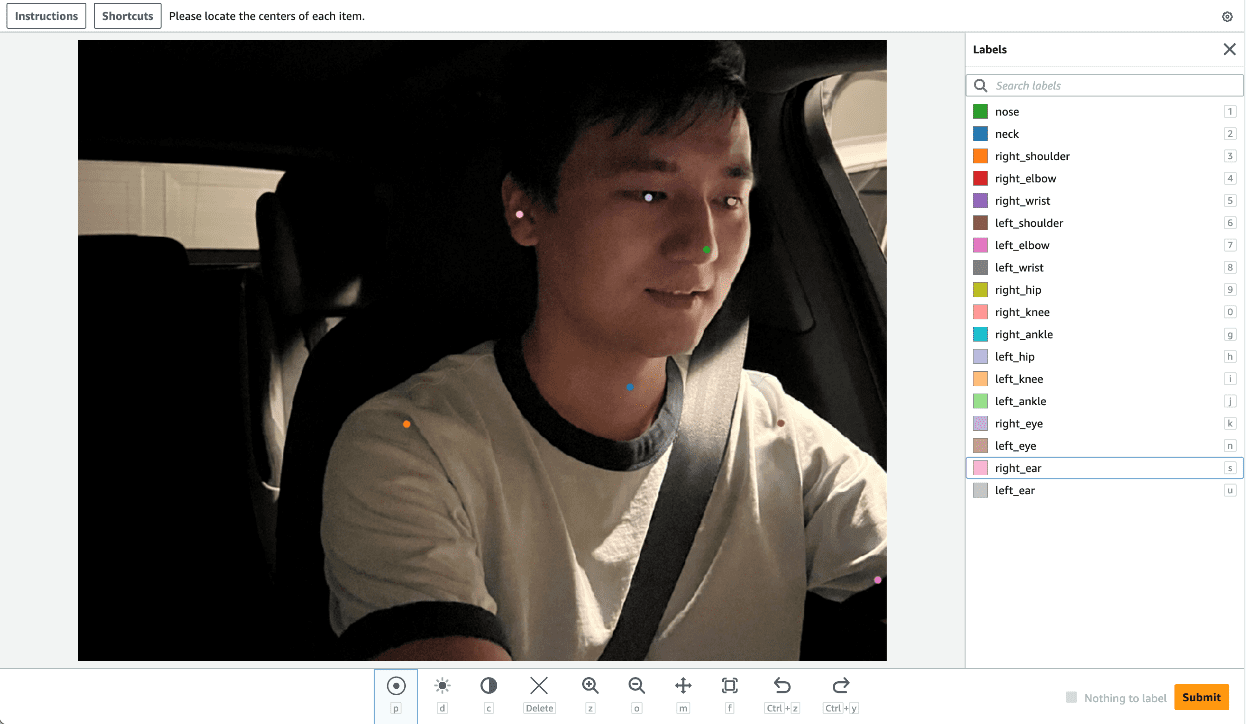 The following screenshot demonstrates a SageMaker Ground Truth labeling job for key points annotation.
