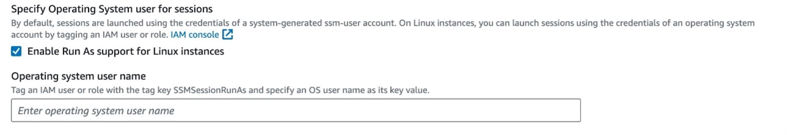 ssm-useraccount on a managed node. To enable Run As in Session Manager, complete the following steps:- On the Session Manager console, choose Preferences, then choose Edit.