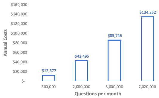 Cost grows as the number of questions grow with the On-Demand model, as can be seen in the following figure for annual costs (based on the table discussed earlier).