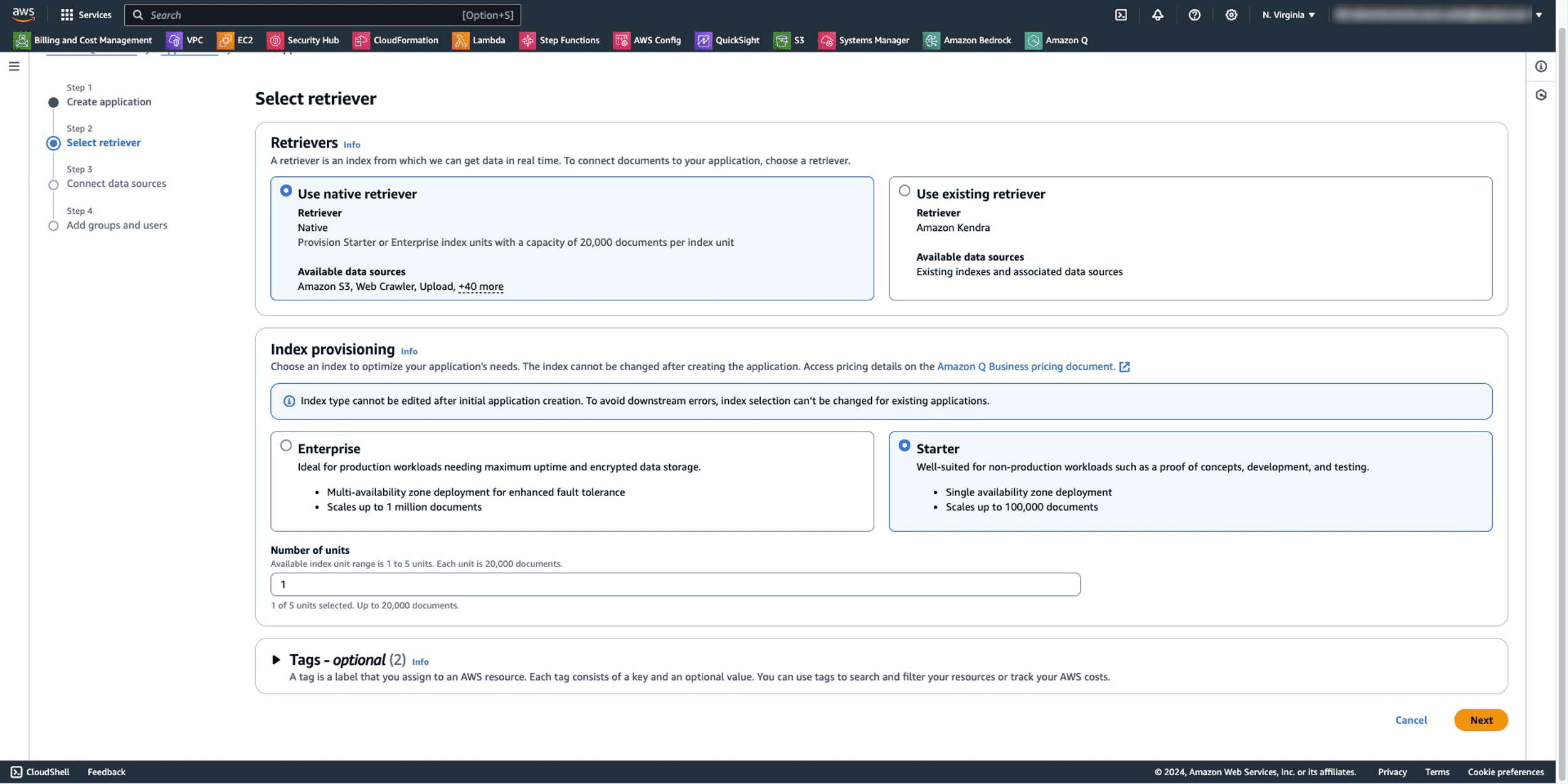Amazon Q offers three subscription plans: Amazon Q Business Lite, Amazon Q Business Pro, and Amazon Q Developer Pro. Read the Amazon Q Documentation for more details. For this example, we used Amazon Q Business Lite.