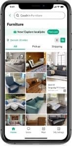 - OfferUp users perform both text and image searches, such as “gray faux leather sofa” or “running shoes”.