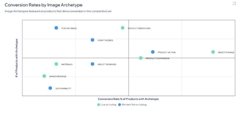 As shown in the following screenshot, the image archetype feature shows attributes that are driving sales in a given category, allowing brands to highlight the most impactful features in the image block and A+ image content.