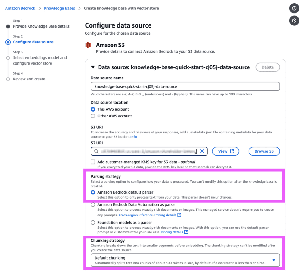 8. For Parsing strategy, select Amazon Bedrock default parser.