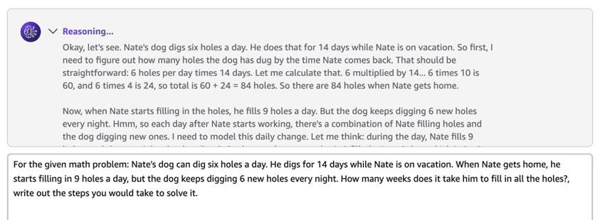 DeepSeek-R1 models, now available on Amazon Bedrock Marketplace, Amazon SageMaker JumpStart, as well as a serverless model on Amazon Bedrock, were recently popularized by their long and elaborate thinking style, which, according to DeepSeek’s published results, lead to impressive performance on highly challenging math benchmarks like AIME-2024 and MATH-500, as well as competitive performance compared to then state-of-the-art models like Anthropic’s Claude Sonnet 3.5, GPT 4o, and OpenAI O1 (more details in this paper).