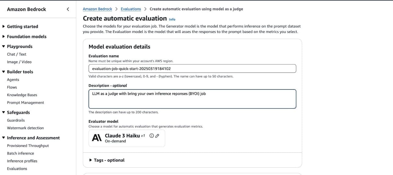 Start an LLMaaJ evaluation job with BYOI using the Amazon Bedrock console