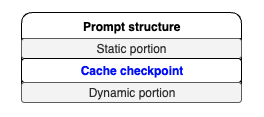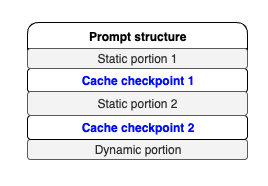 You can create multiple cache checkpoints within a request, subject to model-specific limitations. It should follow the same static portion, cache checkpoint, dynamic portion structure, as illustrated in the following figure.