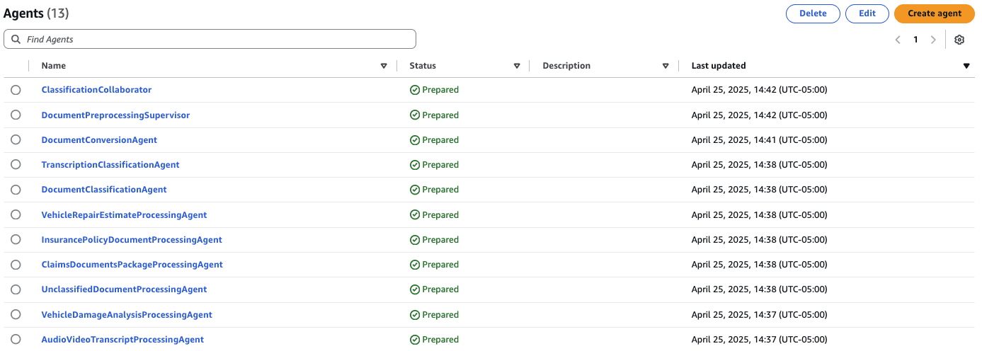 - Coordinate specialized domain processing by invoking the appropriate agent for each data type—for example, a claims documents package is handled by the Claims Documentation Package Processing Agent, and repair estimates go to the Vehicle Repair Estimate Processing Agent.