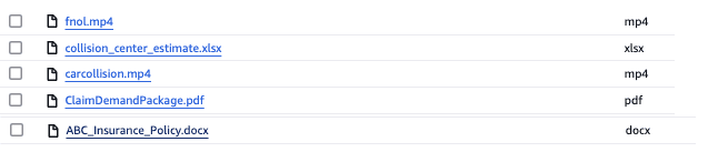 - The Classification Collaborator Agent’s classification step organizes the uploads into categories—FNOL calls, claims document packages, collision videos, and so on.