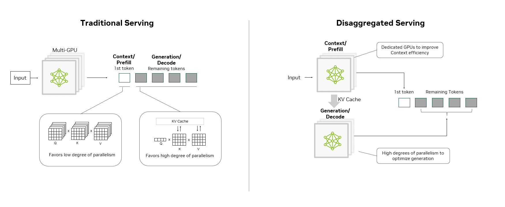 Figure 2. Disaggregated serving separates prefill and decode on different GPUs to optimize performance.