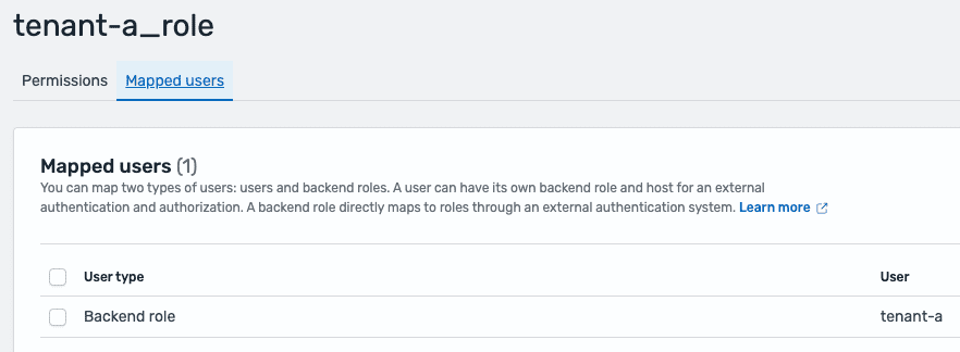 The following screenshot shows an example of tenant role mapping in FGAC in OpenSearch Dashboards.