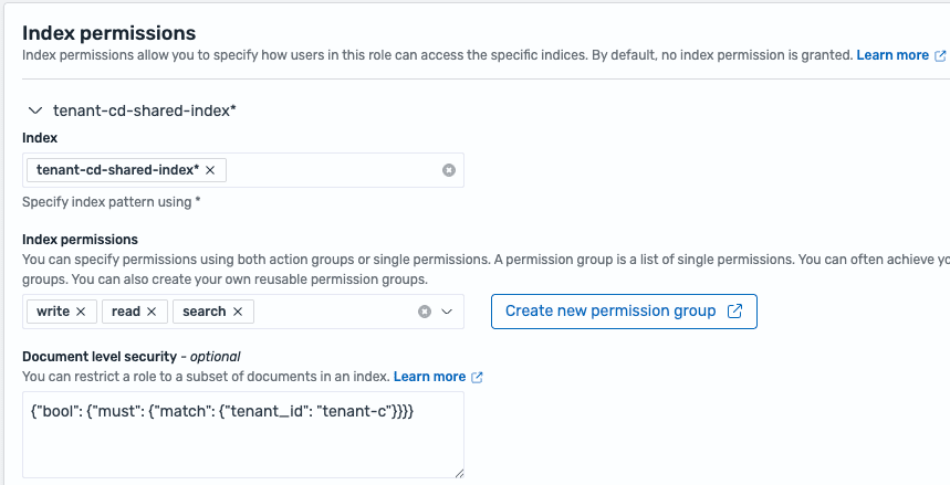 index_permissionsfor an FGAC role that allows tenant-c to access only its own data in a configuration where tenant-c and tenant-d share an index: