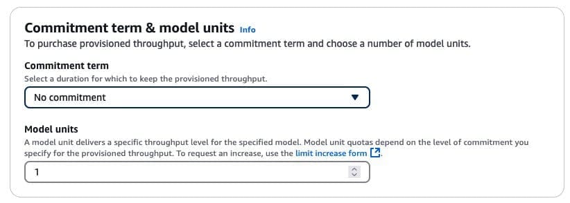 With the preceding hyperparameter configuration, this fine-tuning job might take up to 12 hours to complete. When it’s complete, you should see a new model in the custom models list. You can then create provisioned throughput to host the model. For more details on provisioned throughput and different commitment plans, see Increase model invocation capacity with Provisioned Throughput in Amazon Bedrock.