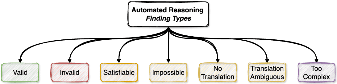 TRANSLATION_AMBIGUOUS: Identifies when ambiguity in the Input and Output prevents definitive translation into logical structures. This finding suggests that additional context or follow-up questions may be needed to proceed with validation.