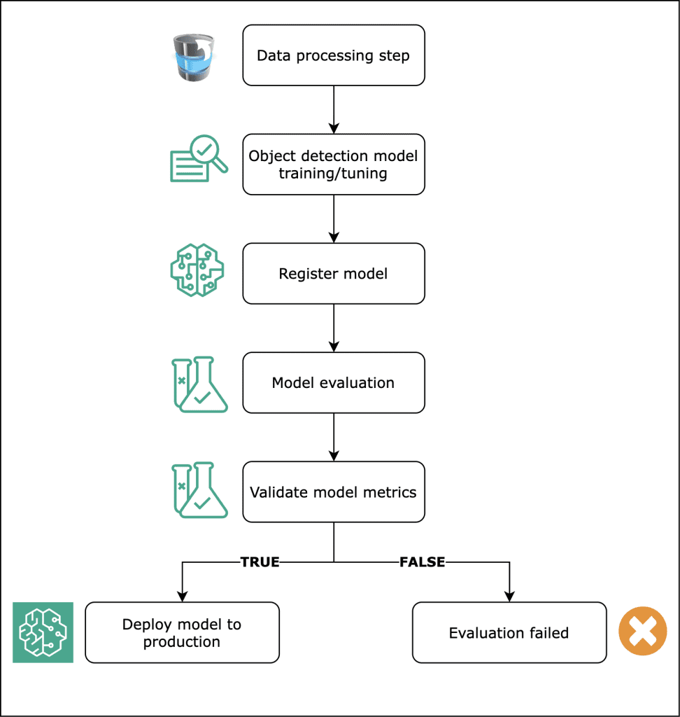 Building an accurate object detection model was only the first step in building a comprehensive AI-powered construction safety system. Ongoing improvement required rapid iteration, controlled experimentation, and reliable promotion of high-quality models as new data became available. To enable this, TrueLook and AWS implemented an automated workflow using SageMaker Pipelines that supports parallel experimentation with the ability to add automated model evaluation that automatically filters out underperforming models and advancing only those that meet predefined performance thresholds, resulting in faster iteration, improved reproducibility, and a dependable path from experimentation to production.