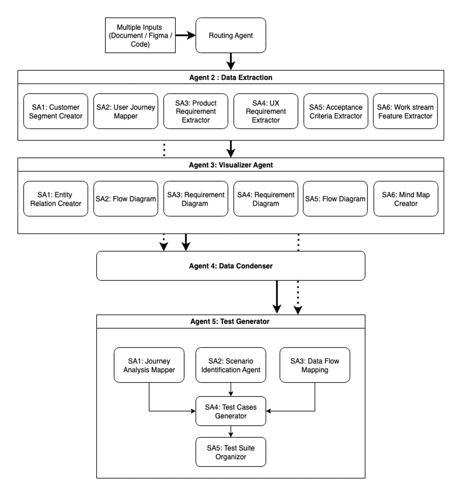 The single-agent approach presented several critical limitations. Context length restrictions prevented processing large documents effectively, but the lack of specialized processing phases meant the AI couldn’t understand testing priorities or risk-based approaches. Additionally, hallucination issues created irrelevant test scenarios that could mislead QA efforts. The root cause was clear: AI attempted to compress complex business logic without the iterative thinking process that experienced testers employ when analyzing requirements.