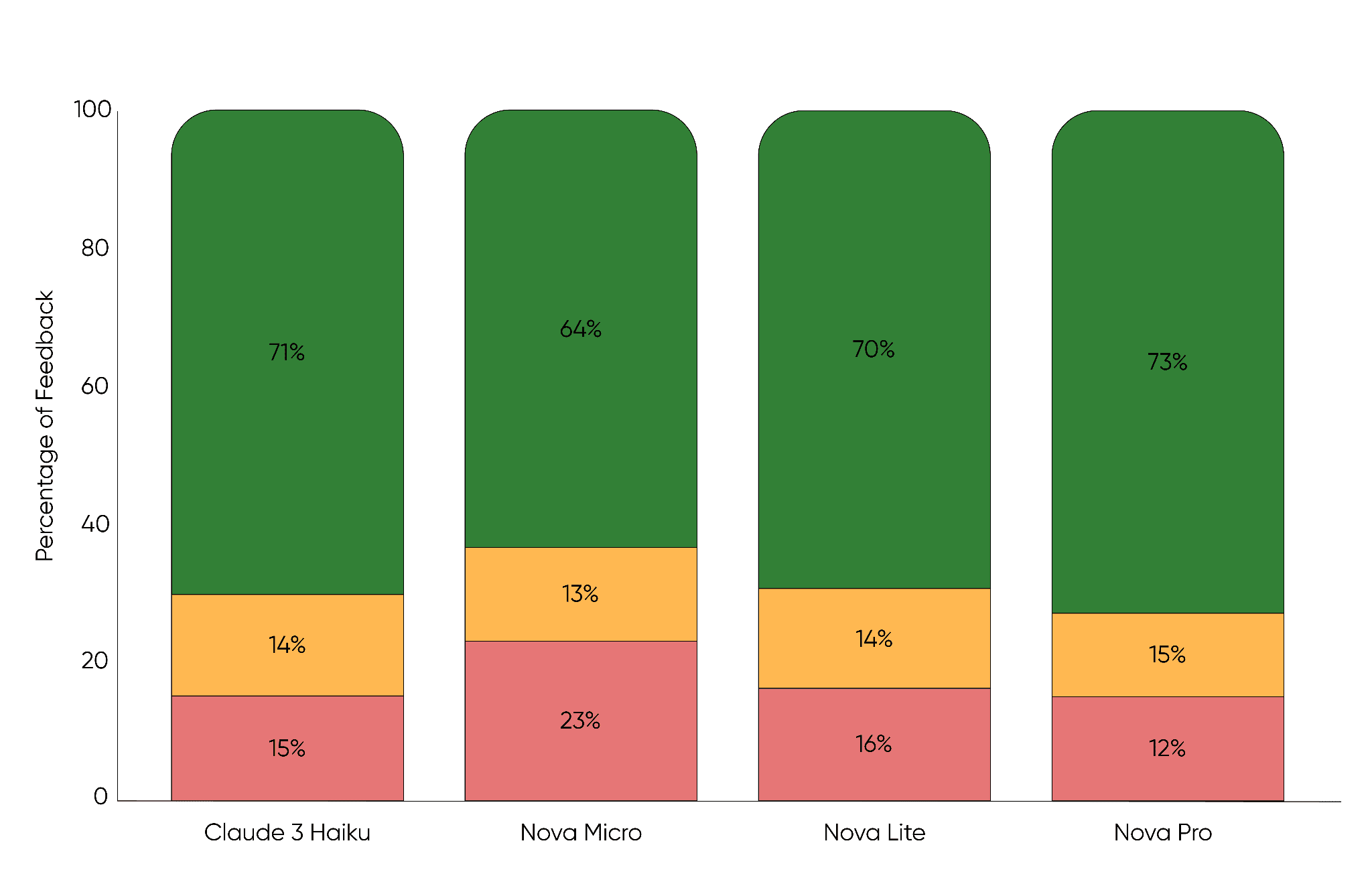 In early 2025, we ran a multivariate A/B test comparing Claude 3 Haiku and Nova models, tracking guardrail metrics and gathering direct user preferences through our in-app feedback feature.